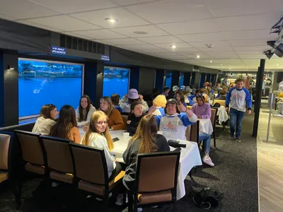 We left the mall and headed to the Potomac! Our group spent the evening on a sunset cruise along the Potomac. Dinner, dancing, and sightseeing were all on tap. Our students had THE best time and were shocked to learn, even their chaperones knew some of the music! 🙂