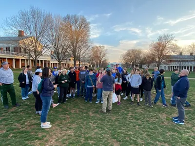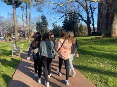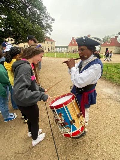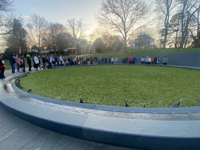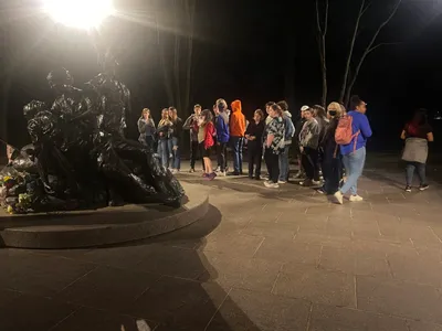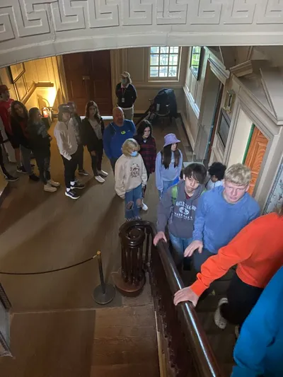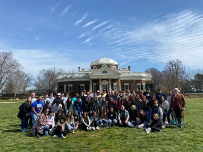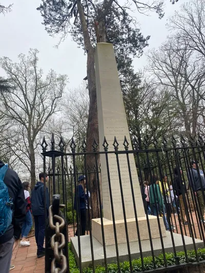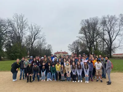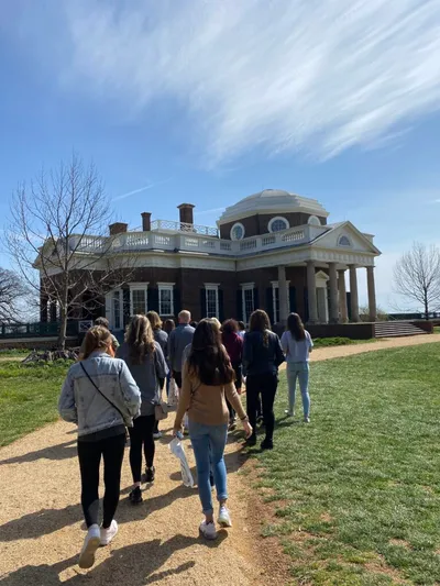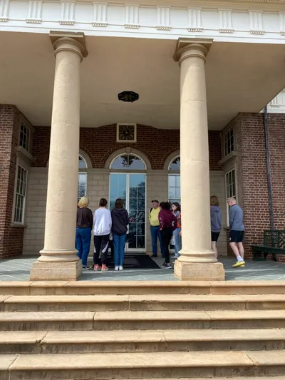 UVA was chartered in 1819, and the first-class began in 1825. The history is really amazing. Some areas of note: the new memorial dedicated to the enslaved people who built many of the buildings on campus, the Rotunda, the Academical Village, where both faculty and students have lived, with faculty upstairs and students downstairs, the yard which is in the center of village (or quad as many schools call it), a portion of the Berlin Wall which was placed after its collapse, and Edgar Allen Poe’s dorm room! We also drove past the athletic fields and arena. It was a full evening, and all the students loved it. We begin bright and early tomorrow with a trip to Thomas Jefferson’s Monticello, then DC in the afternoon! Stay tuned!