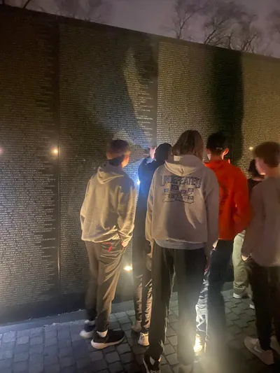 After leaving Monticello, we enjoyed a box lunch and a quick nap as we drove toward D.C.! In the early evening, we entered the city and did a short driving tour past several embassies. We stopped for dinner at a local cantina and then went through three of the monuments for a night stroll. We visited the Korean War Memorial, the Vietnam Veterans Memorial (a few of our students found the names of their family members), and the Lincoln Memorial. It was a fantastic night, and our students were so attentive and respectful at each location. We finally reached our hotel at 11:30 PM and have turned in for the night! We have a full day tomorrow to include Arlington National Cemetery topped off with a chance of heavy rain! Be sure to follow along all day on social media sites in the stories.