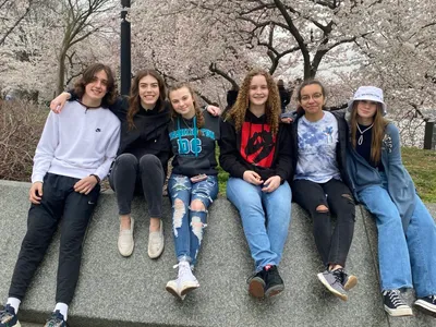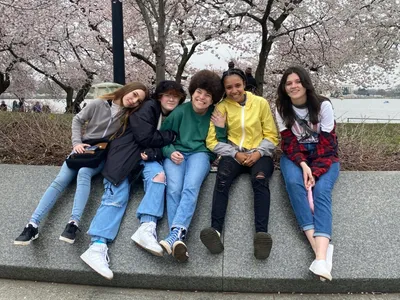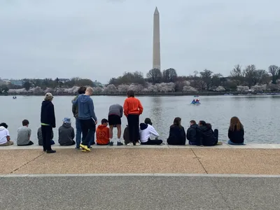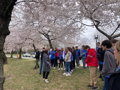 After our time with the monuments we took a moment to walk across the street to Tidal Basin and enjoyed the cherry blossoms at their peak bloom! It was simply gorgeous and our students loved taking photos with them. Coach Adam Welch even caught a couple of gorgeous photos of the blooms.