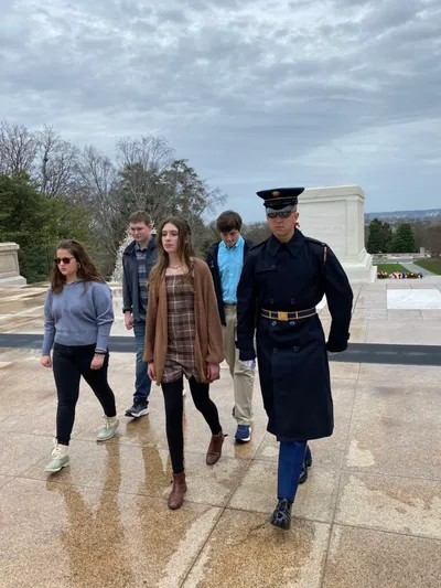 From there the students quietly walked to the Tomb of the Unknown Soldier to witness the changing of the guard and the Wreath Presentation. This was a somber experience for most of our students, but one they each took in. We were lucky to have CA students participate in the Wreath Ceremony. Wyatt McQueen, Tanner Wilson, Anna Hellums, and Lilly McAlister were able to participate in the ceremony and present the wreath at the tomb. (Check out part of the video on our social media.)