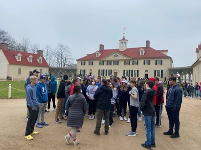 This morning began with breakfast at 7:00 AM and on the bus by 8:00. We rushed to Mt. Vernon to visit the home of George Washington and take in the grounds. It was impressive. We took at quick group photo at the start of the driveway and then headed into the house. The tour was quick, but impressive. The simplicity of some things, but grandeur of others was interesting. The stairway railing was original and made of walnut. They invited you hold on to it as you journeyed to the top floor and think of all the people before you who had touched it. The kitchen was added later and separated from the rest of the house. The students found the grounds the most interesting. A visit down a path out back led us to a burial area of slaves. In recent years, special ground detection equipment has been used to identify burial grounds. Many, many painted rocks were placed and burial sites outlined in this area. It was a somber sight to see. We visited Washington’s burial site and our students were so respectful as we walked the grounds. We then walked to the museum. This was very interesting for our students (and adults) and we learned so much. A crowd favorite was seeing his actual teeth on display!
